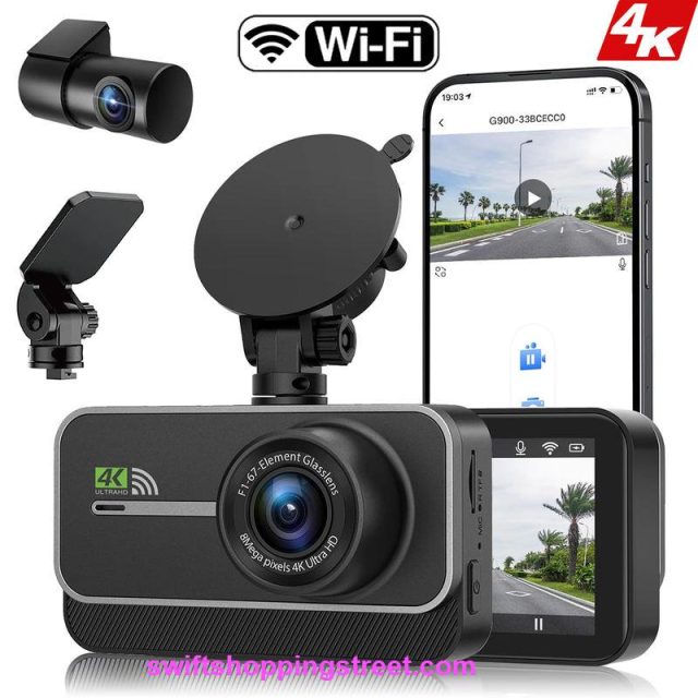 Dash Cam Dual Lens 4K UHD Recording Car Camera DVR Night Vision Video Recorder Built-In Wi-Fi Support GPS 24H Parking
