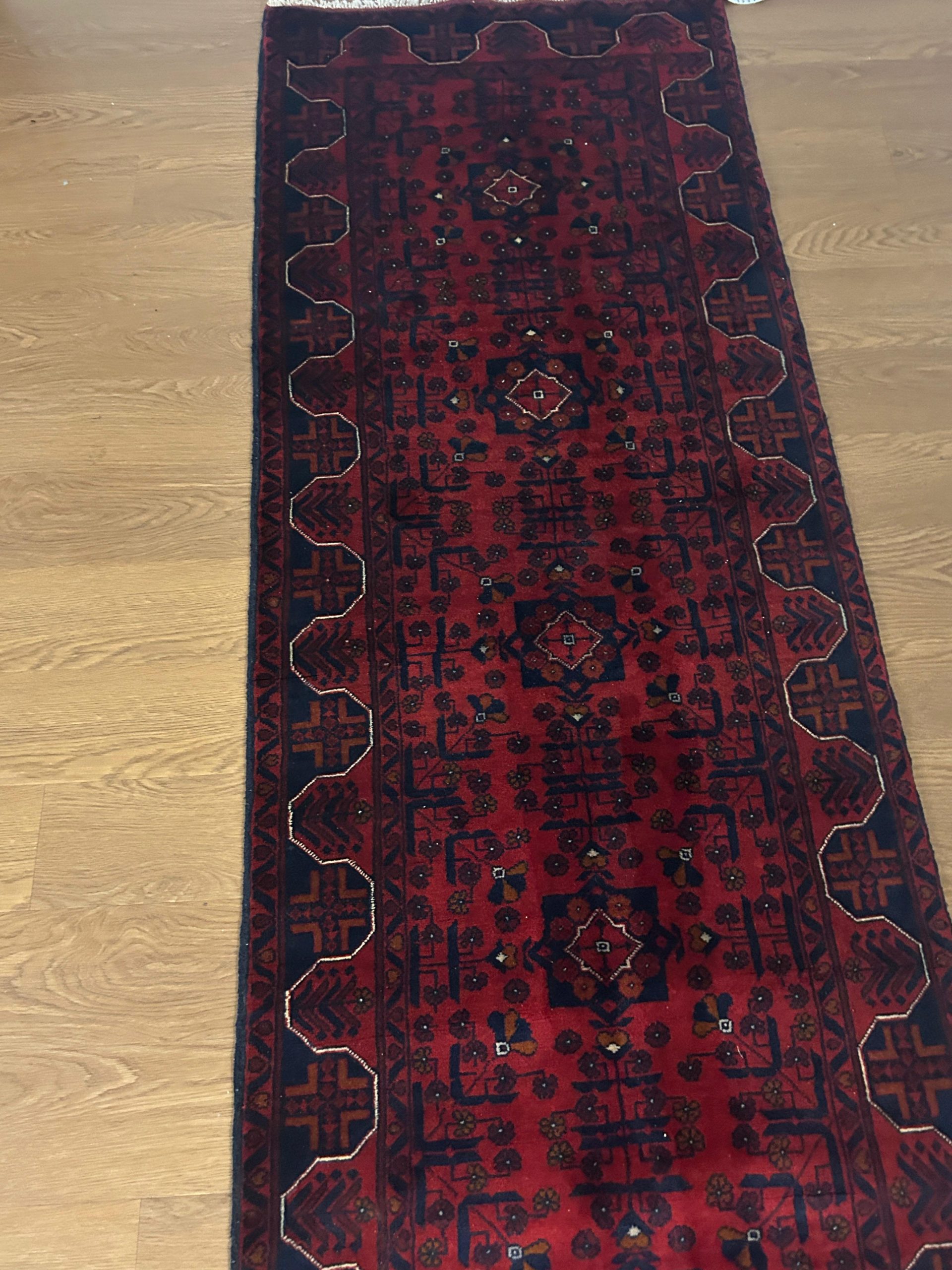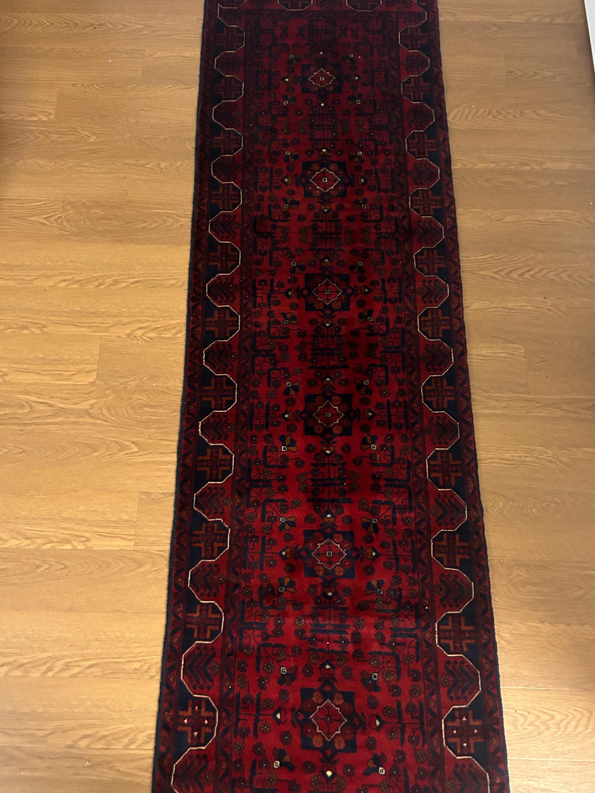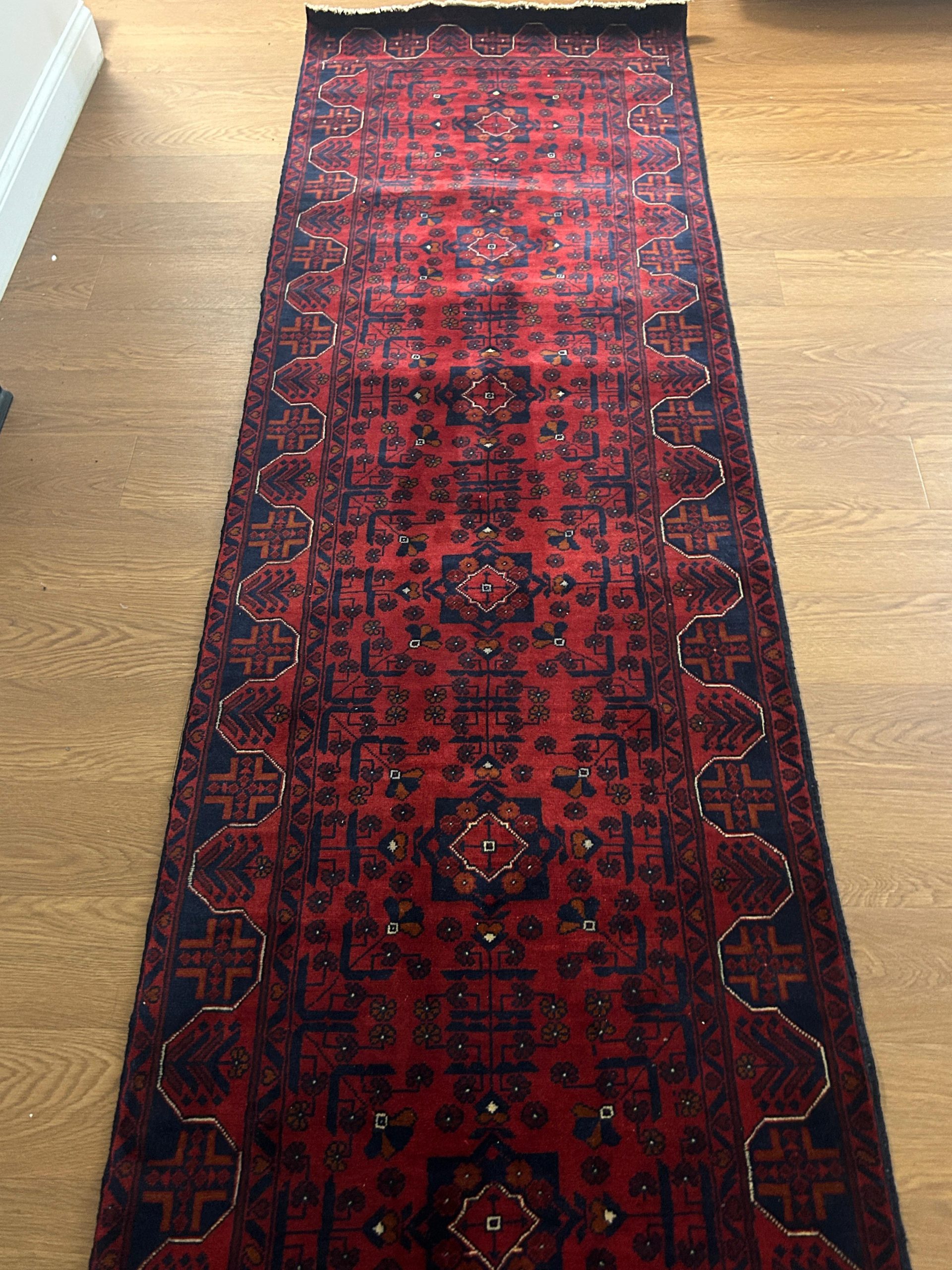 Elegant Handmade Afghan Rug – Size:  9.2 x 2.8 ft – Stunning Craftsmanship & Design!