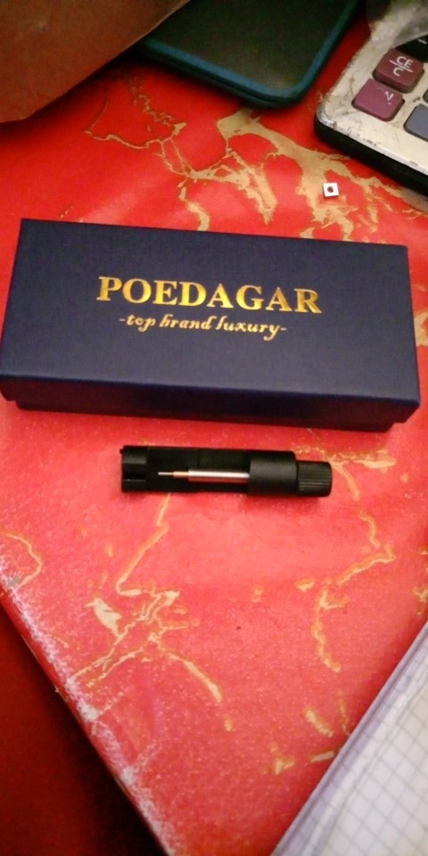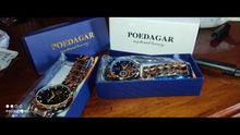 my 2nd poedagar watch. great quality for the price. battery operated chronograph, hollow bracelet, easy to adjust, looks great. watch looks better in person than in pictures. I try to keep them out of the water, don't have high expectations for waterproofing in this price point