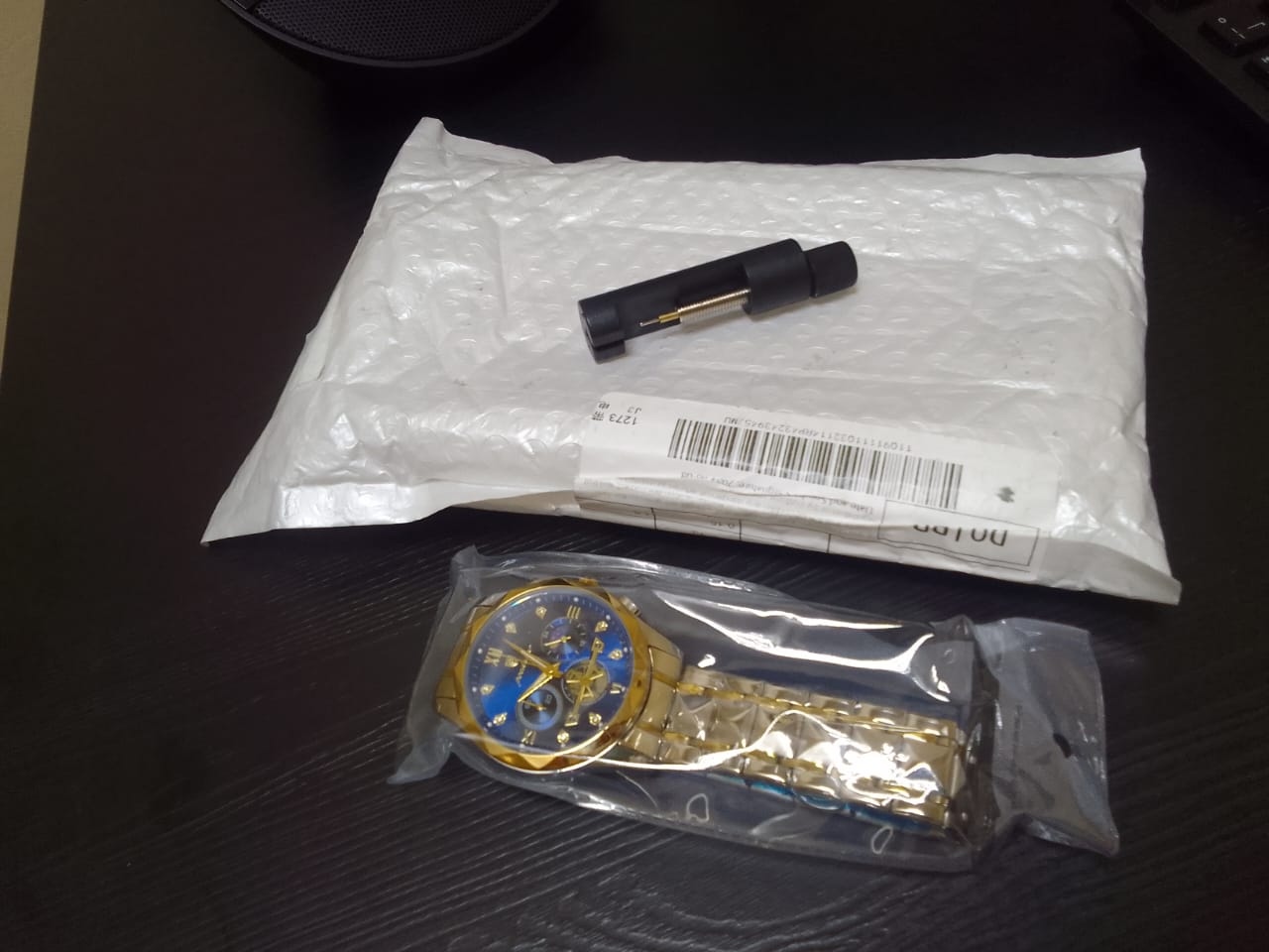 Clock😍💓Beautiful fast delivery and good packaging👍Thank the seller and recommend it. Thanks also for the watch strap adjustment machine.
