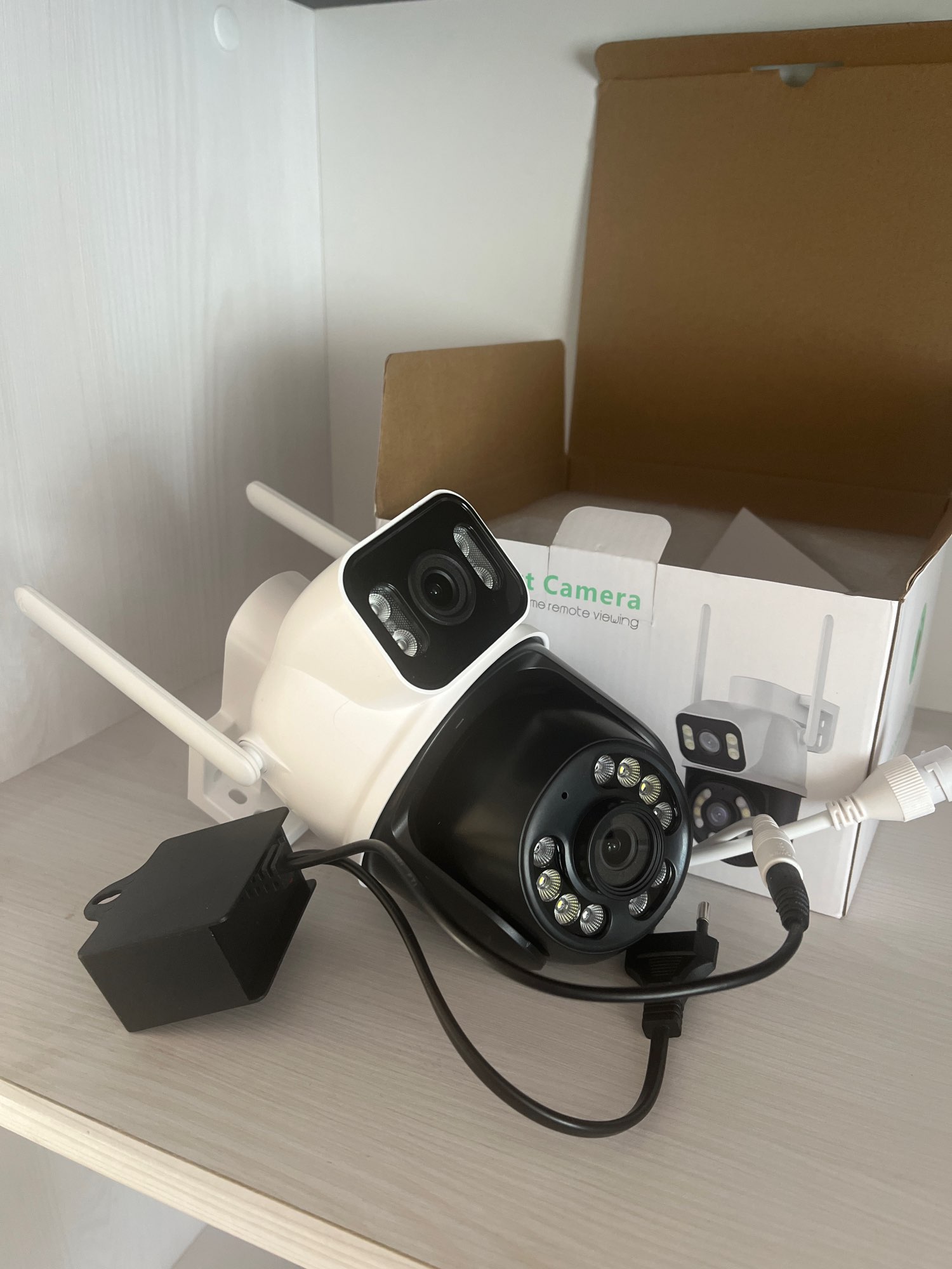 Cameras fully in working condition, without damage. Packed in triple packaging. The packaging in the corners is a little dented, but not critical. Setting up and connecting to a smartphone and computer without problems. The cameras had more capabilities than I expected.