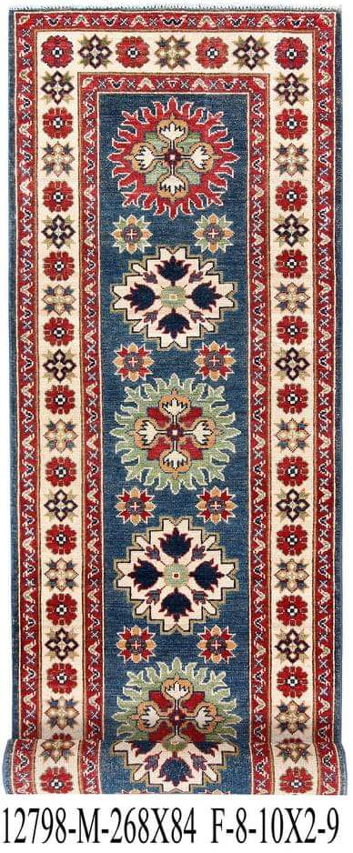1. Best hand knotted commercial Kazak rugs runner manufactured in Pakistan by specialzed artisan. This is a beautifully designed runner best for living/drawing room and office to receive your guests and vistors and extend them a very warm welcome.
